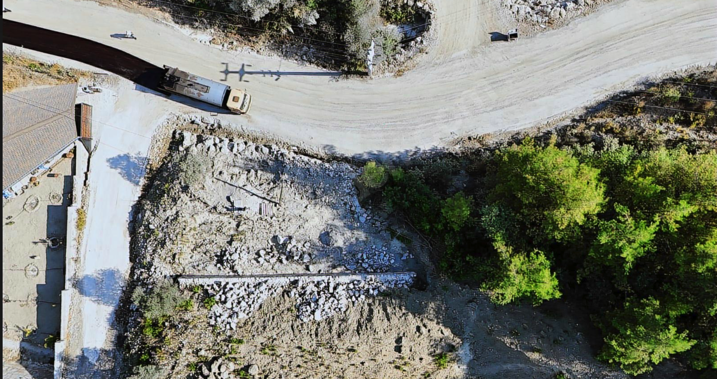 - Forest on one side and a road on other sides.